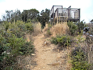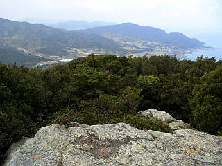 | 殿様新道入口 | 衣笠山山頂 | 桟敷岩から見る霞む渥美半島西部の山々 |