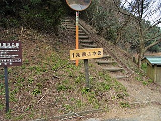 | 仁崎峠の滝頭山登山口 | 滝頭山山頂と蔵王山と衣笠山 | 少しすっきりした荒れた林道 |