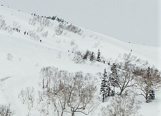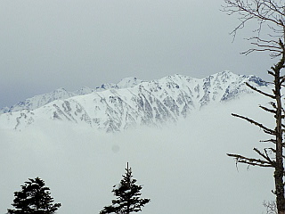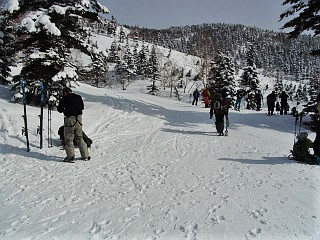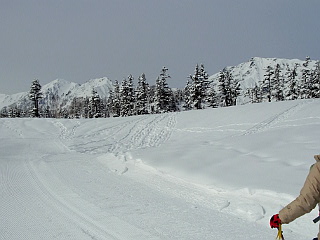 | 山行記 | ●3月12日から栂池のロープウェイが運行を開始するというので、運行開始から2日目に当たるこの日、栂池自然園まで上がってみることにした。 ●宿から、スノーシューを担いで栂池高原駅からゴンドラで栂の森駅まで行き、脱ぎ履きが面倒なのでスノーシューを履かないで栂大門駅へ移動してロープウェイで自然園駅まで行く。 ●ロープウェイにはスノーボードやスキー、スノーシューなどいろいろな人が乗っていたが、自然園駅で降りると、皆そのままツアーコースへ向かい、栂池自然園方面へ行く人は見当たらなかった。 ●それでも、こちらはスノーシューを履き、栂池自然園方面へ圧雪されたばかりの雪を踏みしめながら緩やかに登っていく。行く手には、青空ではないので少しすっきりしないが、黒い岩の目立つ雪の白馬三山を見ることができる。 ●栂池自然園入口の山荘や売店はまだ営業していないので、そのまま自然園に入る。ようやく後続の人たちが追い付いてくるが、皆山スキーを楽しむ人たちのようだ。 ●見渡す限りの雪原で、トレースも至る所にあり、どこを歩けばいいのかわからないので、とりあえず、自分たちを追い抜いていった山スキーのカップルに着いていくことにした。空では、轟音を立ててヘリスキーのヘリが頻繁に行き来していた。 ●目標とする展望湿原は最初から見えているが、まだまだ遠く、標高差もまだありそうだ。それでも、思ったより寒くなく、むしろ汗をかく程で、快適に進んでいくが、どうやら前を行くカップルが、展望湿原を目指していないようで、コースが違うようなので、正しいと思えるトレースに向けてコースを修正する。 ●いろいろと迷い、コースを変更しながら展望湿原のあるピークを目指して進むと、展望湿原へ登るトレースが1本だけ見えるが、それはいかにも急で、たぶん山スキーで滑り降りた跡のようだった。 ●それ以外のコースをいろいろ探してみたが、結局見つからないのでその山スキーのトレースを辿って半ば強引に展望湿原のあるピークに続く尾根上に出る。尾根の上からは、高妻山や妙高山などの北信五岳などを展望することができた。 ●そこから展望湿原へは緩やかに少し登るだけだ。さすがに展望湿原というだけあって、青空ではないので白い空に溶け込んでしまって残念だが、それでも白馬三山の眺めは圧巻で、それに続く唐松岳や五竜岳、鹿島槍ヶ岳なども見ることができた。 ●また、展望湿原周辺にはホシガラスが飛び交っており、白馬乗鞍岳や小蓮華岳の斜面には、ツアーコースを滑り降りる山スキーの人達の姿を確認することができた。 ●展望湿原でしばらく時間を過ごした後、下山を始める。下ってみると急な箇所が多く、スノーシューでは少し大変だが、そりを持ってきた妻はそれを使って滑り降りるのを楽しんでいた。 ●栂池自然園入口近くまで戻ると、スノーシューを履いたツアーの集団やスノーボードを担いで小ピークを登る集団など、来た時とは違って随分賑やかになっていた。 ●まだ時間も早く、下るのはもったいないような気もしたが、昼も近くお腹も空いてきたので、ロープウェイ、ゴンドラを乗り継いで下まで下り、スキーで来ていた時によく寄ったお好み焼き屋を久々に訪れ、お昼と運動の後のビールを頂いた。 |