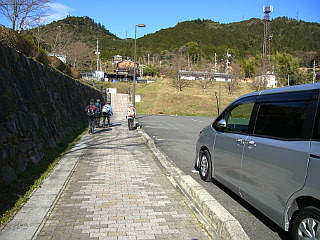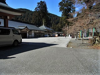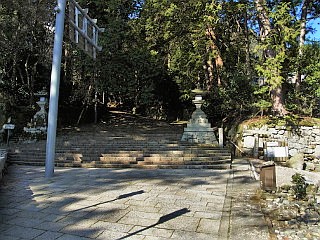 | 大宮川観光駐車場を出発する | 登山口の日吉神社 | 日吉神社横の石段が本坂登山口 |