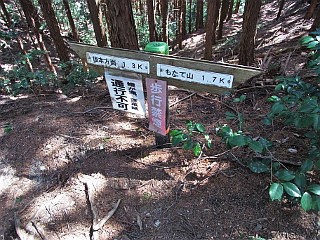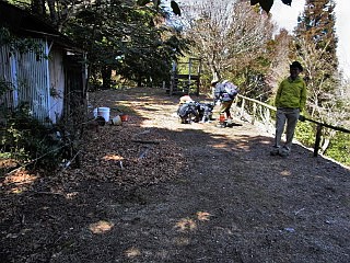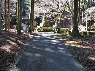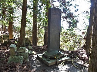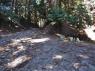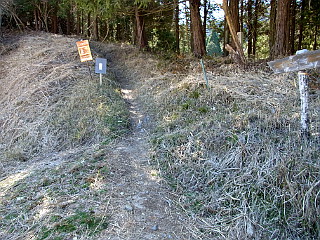 | すっかり展望の無くなったキャンプ場跡 | 裳立山山頂にある紀貫之墓 | 通行止めの案内が気になるが坂本へ下る |