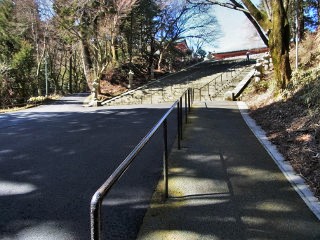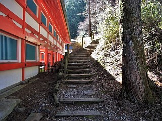 | 阿弥陀堂へ続く階段 | 阿弥陀堂の隣に立つ法華総持院東塔 | 法華総持院東塔の裏手が登山口 |