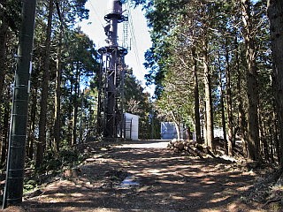 | 道が幾つも分岐するが左奥の階段が正解 | テレビ各局の通信施設の横を通る | 一等三角点のある比叡山山頂 |
