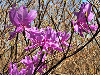 | 一輪だけ咲いていたモチツツジ | ミツバツツジ | アオキ |