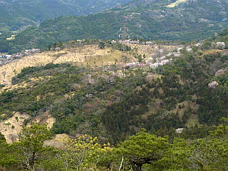 | 比丘尼駐車場 | さくらまつりの比丘尼城址 | 東屋と雨生山 |