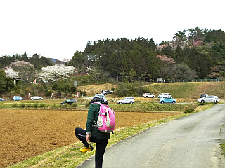 | おすすめの小径から見る雨生山 | 西登山口 | 駐車車両で溢れる比丘尼駐車場一帯 |