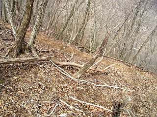 | 山行記 | ●最近、近所の山ばかり行っていたので、たまには少し遠くの山へ行ってみようと、鈴鹿の山へ行くことにした。最初は、花の多い藤原岳にしようと思っていたが、藤原岳も何回か行っているので、今回は久しぶりに御池岳へ行ってみることにした。 ●国道306号線は現在滋賀県方面が通行止めになっているが、登山口となる鞍掛トンネルの手前までは行くことができる。トンネルの手前に駐車スペースがあるが、車両の転回用で使用禁止となっていたので、すぐ下の駐車スペースに車を停めた。 ●まずは国道を歩いて、今日登山口にするコグルミ谷入口を目指す。道沿いには、キブシやヤマザクラ、シロモジなどの木の花が、足元には、タチツボスミレやミヤマキケマン、ヤマエンゴサクなどが咲き、まさに春爛漫だ。 ●コグルミ谷入口に着くと、早速左の斜面に付けられた道から谷沿いを登る。度々崩れるのか、不安定な沢沿いの道では、ネコノメソウやユリワサビ、ヤマルリソウなど、花の種類はさらに増す。 ●やがて、タテ谷の分岐を分けると、ミノコバイモやキクザキイチゲ、ヒトリシズカなども現れるが、この辺りから上はまだ花のシーズンではないようで、足元の花は少なくなる。 ●延命水を過ぎると、ジグザグの急登になり、それを登り切ると、白瀬峠を経て藤原岳へ続く道と真ノ谷を経て御池岳へ続く道との分岐となるカタクリ峠に到着する。カタクリ峠には六合目という表示があった。 ●カタクリ峠からは、花が多いという白瀬峠までの道を歩いてみることにして、分岐を左方向に進む。しかし、期待に反して花はまだこれからのようで、イワウチワやカタクリの葉は多く見かけるが、咲いているものはほんの僅かだった。 ●木の間越しに見える烏帽子岳などを見ながら、緩やかな登りを登り、いくつかのピークを越えると、道は下り始め、やがて、白瀬峠に着く。ここは、まっすぐの藤原岳方面、左の坂本谷方面、右の真ノ谷方面への分岐となっている。 ●ここは、左の真ノ谷方面へ下り、真ノ谷を遡って御池岳を目指すつもりだ。真の谷への下りは、まっすぐ谷へ下ると思っていたが、考えていたよりもトラバースが多く、道もはっきりしないが、テープがあるのでそれを頼りにわかりにくい道を下った。 ●下り切るとキャンプ場跡地らしい所に着くが、それ以降何の目印も無くなってしまった。真ノ谷沿いには、僅かに人が歩いたと思われる薄い踏み跡が切れ切れにあるのでそれを辿って進む。 ●しかし、それも完全に見失ってしまったので、地図で右手の尾根が先程歩いた尾根道だと確認し、道なき道を登ることにした。下草も無く、登りやすい急な斜面を登り切ると、しっかりと歩かれた尾根道に出ることができたので一安心。 ●尾根道は急な登りに変わり、すぐに七合目の看板が現れた。カタクリ峠が六合目なので、どうやらカタクリ峠よりも御池岳寄りに出たようだ。 ●急な登りはしばらく続き、ピークを過ぎると、道は少し下り、八合目の看板がある真ノ谷出合に到着する。そこにも真ノ谷コースの案内があったが、道らしい道は確認することができなかった。 ●真ノ谷沿いの緩やかな道を少し進むと、まっすぐ日本庭園へ続く道と、御池岳山頂へ向かう道との分岐に出るので、御池岳山頂へ向かう。急な登りは、九合目の看板を過ぎるとさらに急になり、それを登り切ると、鈴鹿山脈最高峰の御池岳山頂だ。 ●御池岳山頂からの展望は、この日は霞んでいてはっきりとはしないが隣の霊仙岳やその隣の伊吹山などは確認することができた。御池岳山頂は、面のとれた石灰岩が多くなかなか休憩するところが無いのでそこそこにして先へ行くことにした。 ●御池岳山頂からは日本庭園へ直接下る道を行く。冬枯れた疎林の間から鈴北岳や霊仙山などを見ながらロープで仕切られた道を下ると、先程の分岐から続く道と合流する。 ●日本庭園には、期待した花はまだこれといって咲いていないが、地塘の点在する草原は気持ちがいい。途中鈴北岳へ続くであろう脇道があるが、本道をまっすぐ進むと、鈴北岳と書かれた看板が現れる。 ●それに従って緩やかな道をしばらく登ると、360度展望の開ける鈴北岳の山頂に着く。山頂からは藤原岳や御池岳、霊仙岳などはもちろん、伊吹山や琵琶湖なども薄っすらとだが確認することができた。 ●鈴北岳からは、鞍掛峠へ下山する。立木の無い下山道は遠く先の方まで見ることができいい感じだ。タテ谷方面への分岐を過ぎると木の階段の急な下りになるが、地が柔らかいのでほとんどの木の階段が壊れており、かえって歩きにくい。 ●道は、いくつかのピークを越えながら気持ち良く続き、やがて、送電線鉄塔が現れると、間も無く鞍掛峠に着く。鞍掛峠からはザレて滑りやすい急な坂を下る。この辺りもヤマルリソウやミヤマカタバミ、ミヤマハコベなど花盛りだ。 ●道がジグザグの急斜面を下るようになると登山届届け出所のある鞍掛