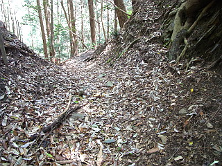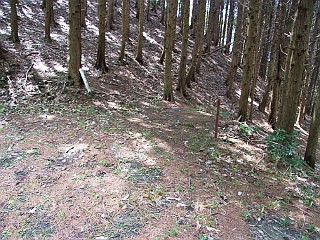 | 上辻頭 | 砂利道の林道に出る | 砂利道の林道はホタルの里駐車場へ続く |