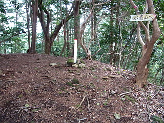 | 小柿山山頂 | 丸山山頂 | 喜桜山山頂には登山道の標識が置いてある |