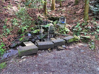 | 舗装道に出る | 水量豊富な延命水 | 額堂山登山口 |