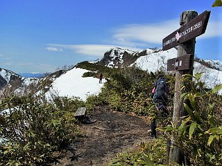 | リフト終点と白馬三山 | 地蔵ノ頭から見る雨飾山、焼山、火打岳 | 地蔵ノ頭から見る妙高山と高妻山 |