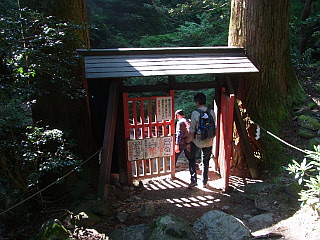 | 三徳山三仏寺 | 朱塗りの門から入山する | 木の根を攀じ登る |
