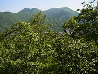 | 地蔵堂からの眺め文殊堂の屋根も見える | 鐘楼 | 馬ノ背のような道 |