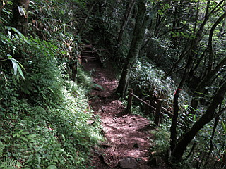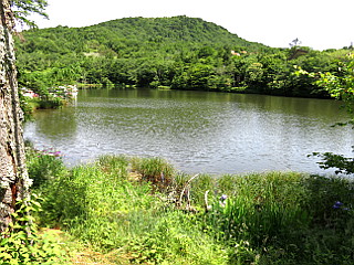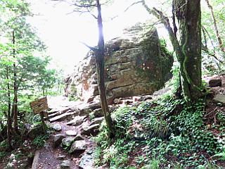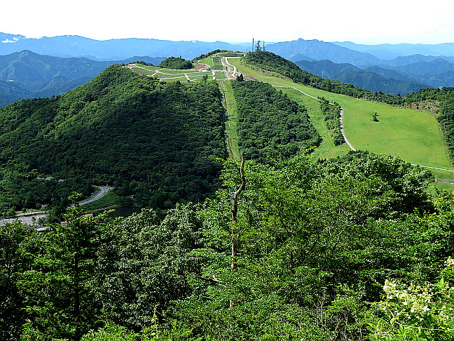 | 山行記 | ●まとまった雨量となった前日とは打って変わって、梅雨の晴れ間となったこの日、近くの里山は暑そうなので、標高の高い愛知県最高峰の茶臼山へ出掛けることにした。 ●茶臼山第1駐車場は、まだ早いのでそれほど自動車は停まっておらず、バイクの集団が賑やかに休憩をしていた。支度を済ませ、ミストの出ている総合案内所とレストハウスの間を通って「西登山ルート」という看板からスキーゲレンデの斜面を登る。 ●朝露の為か昨日の雨の為なのか、草が濡れていて嫌な感じだ。少しでも靴が濡れないように草の短いところを選んで登る。やがて、レストハウスのある第2駐車場に着くが、駐車場の向こうが西登山ルート入口だ。西登山ルート入口にある風力発電用の風車は風が無いので回っていなかった。 ●西登山ルート入口から緩やかに登っていくと、草の丈も長くなり、靴が濡れてきそうで気が気でないが、草の中からバイケイソウが立ち上がり白い花を咲かせているのが見える。 ●自由の広場から山道に入るが、石や木の根が濡れているので滑りやすいので慎重に登る。少し登ると山腹を巻きながらに緩やかに下り、休暇村ルートを分けると急な木の階段を登るようになる。道はすぐに長野県側へのルートを分け、引き続き急な階段を登る。 ●急坂を登り切ったところが稜線で、萩太郎山や三ツ瀬明神山などの奥三河の山々へと展望が開ける。稜線から平坦な道を少し行くと、展望台のある茶臼山山頂の広場に出る。山頂には、三角点があり、その周りにはフランスギクが咲いていた。 ●山頂からさらに平坦な道を進むと鉄製の展望台があるが、老朽化により使用禁止になっていて登ることができない。展望台の上からは恵那山や中央アルプスなどを見ることができただけに残念だ。 ●鉄製の展望台から濡れて滑りやすい急な坂を下ると「雷岩」という大石のある所に出る。前回はそこから右の山腹道を歩いて西ルートに戻ったが、今回は左の東ルート方面へ下ることにした。 ●すぐに、観光センター方面と休暇村方面との分岐に出るので、そこは右の休暇村方面へ下る。日の差し込む薄暗い樹林帯の中では、バイケイソウやトチバニンジンが目立っていた。 ●坂はしだいに緩やかになり、突然明るい野外活動ロッジ横の車道に出る。野外活動ロッジを過ぎると休暇村の入口があり、さらに進むと国道151号線へ下る道を分け、すぐに高原道路方面への道との分岐に出るが、そこが高原の美術館と第3駐車場だ。 ●第3駐車場の一角から矢筈池に下る。すぐに池を挟んで右に行く道と左に行く道が分かれるので左を進む。矢筈湖畔にはノハナショウブが咲き、水面にはアサザの黄色い花を見ることができた。 ●ゴーカートなどのあるミニ遊園地を過ぎるとレストハウスの下に出るので、一登りで車を停めた第1駐車場に着く。第1駐車場は、閑散としていた先程とは違い、多くの車で埋まっていた。 |