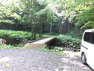 | トイレのある旭又登山口駐車場 | 旭又登山口 | 広い未舗装の登山道に出る |
