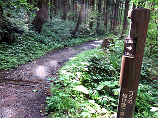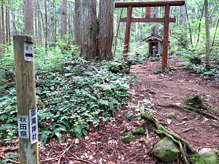 | 山行記 | ●東北の2山目は太平山。日本300名山ではあるが全国的に知れ渡る山ではない。それでも、清酒の「太平山」は有名で、当然飲んだこともあり、それが山の名前と知ってから、一度は登ってみたいと思っていた山だった。 ●秋田の宿を後にして、コンビニで買い出しをした後、旭又の登山口へ向かう。秋田市外から登山口は意外に近く、30分程でトイレのある広い駐車場に着くことができた。 ●駐車場から、橋で赤倉沢を渡って山道に入る。少し歩くと、左から来る、未舗装だが広く歩きやすい道に合流しその道を歩く。途中、赤倉岳分岐を見送り、旭又沢にかかる木の橋を渡ると本格的な山道に変る。 ●すぐに宝蔵岳分岐に着くが、そこから少し登ると弟子還沢にかかる立派な橋を渡る。対岸の木の急な階段を登ると、鳥居と祠のある御滝神社に着く。御滝神社の前は広場になっていて、休憩にはいい場所だ。 ●御滝神社からは、しばらく「あやめ坂」という案内がある急な登りが続く。傾斜がようやく緩んでくると御手洗という休憩ベンチのある広場に着く。そこには「御手洗神社」という標柱が立っているが、祠は見当たらない。 ●御手洗からは、再び急なジグザグの坂が続く。途中で、「七曲」という看板がかかっているが、その名とおり、七回曲がると稜線に出ることができる。 ●鐘のある稜線には大きな木が無く、太平山の山頂や周囲の山々を望むことができる。緩くアップダウンしながら稜線道を進むと、太平山山頂への最後の階段を登る。見た目かなり急そうに見える階段も、登ってみるとそれ程ではなく、意外と簡単に一等三角点のある太平山山頂に到着する。 ●山頂には立派な神社が建っており、その中には神官も駐在しているようだ。山頂からは360度の展望が広がり、いろいろな山が見えるが、どれがどの山かわからないのが残念だ。 ●異常な数のオニヤンマや赤トンボが飛び交う山頂でしばらく過ごした後、下山にかかる。思っていたよりも時間のかかった、来た道をひたすら下り、今夜の宿泊先である山形県の鶴岡までひた走った。 |