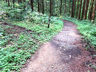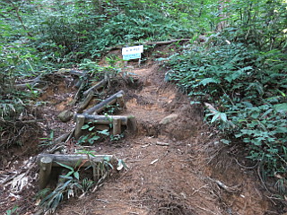 | ベンチのある御手洗の広場 | 今看板から7回曲がると稜線に出る | 稜線の分岐 |