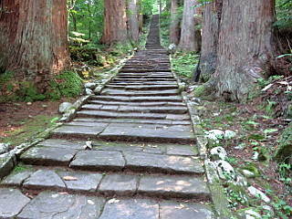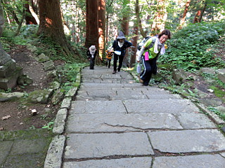| 日本三霊山に数えられる霊験あらたかな羽黒三山神社の石段を登る | ||