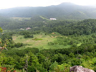 | 山行記 | ●今回は湯田中温泉泊まりで志賀高原の山を目指す。志賀高原の山は、これまで、笠ヶ岳、岩菅山、志賀山などの人気のある山々は登ってきたので、今回は少しマイナーなこの山を選んだ。 ●登山口は石の湯の奥にあるので、道端で温泉が湧き出す道を抜けて駐車場に到着する。駐車場には既に数台の車が停まっていたが、山へ向かう人は見あたらず、この辺りを散策する人ばかりのようだった。 ●駐車場から、入口に掛けられた「夜間通行禁止」と書かれた案内を外して木の橋を渡る。登山道は、前に降った雨なのか露なのか、濡れた草が垂れかかりズボンが濡れる。 ●すぐにオオバミゾホオズキが咲く沢が現れる。ガイドブックでは、そこは飛び石伝いに渡るとあるが、木の橋が架けられていてその必要は無い。 ●沢からは樹林帯の薄暗いジグザグの道を登る。しばらく登ると「70m沢登り」と書かれた木の標柱が現れ、そこから、量は少ないが水の流れる沢を登るようになる。短い距離だが、濡れた石が多くて滑りやすく、浮石も多いので慎重に歩く。 ●沢が終わると登山道は右に曲がり、ジグザグの坂を登る。それを登り切ると南稜線に出るので、以降はその稜線を登る。後方に横手山や笠ヶ岳などの姿が確認できるようになると、小坊寺山分岐に着く。 ●小坊寺山分岐といっても何の表示も見当たらず、黄色いテープが巻いてある木の角柱があるだけで、その時点では分岐であるという確証はなかった。 ●小坊寺山分岐からは傾斜も緩くなり、最後の階段を登り切れば坊寺山の山頂に到着だ。山頂からは、横手山、志賀山、岩菅山、寺子屋峰、焼額山や明日登る予定の赤石山なども見ることができた。 ●坊寺山でしばらく休憩した後、下山に取り掛かる。一旦先程の小坊寺山分岐と思われるところまで戻り、確とした自信は無いが、小坊寺山方面へササをかき分けて踏み入ってみる。 ●最初はササが覆い被さり心配になるが、すぐにササの刈られた明瞭な道に変わる。道はアップダウンしながらしだいに高度を落とし、最後にやや急な坂を登り詰めると、表示も何も無い明るいササのピークに着くが、そこが小坊寺山山頂らしい。 ●小坊寺山から急な道を下っていくと、ヒメゴヨウマツの大木が現れるが、ここまではガイドブックに書いてあるとおりなので、全く案内標識の無いが道は間違えていないようだ。さらに、ガイドブックにある「坊主滑り岩」らしい岩場が現れまた安心する。 ●さらに進むと左手にリンドウ平や石の湯なども見えてくる。やがて、ガイドブックでいう「展望良い広場」であろうという広場に出て、下降点の入口らしいところに赤テープがあるが、その先はササに覆われて道がよくわからなかった。 ●ササの刈られた道は、さらに続くので、もう少し真すぐ進んでみることにした。ところが、道は続くがなかなか石の湯方面に下る様子が無く、やはり先程の広場が正しかったようだ。20分程歩いてきたが、結局そこまで引き返すことにした。 ●広場へ戻ると、赤テープのところから下り始める。背丈以上もあるササが刈られていない上に傾斜のある所もあるので大変だが、道ははっきりしているので、見失わないように下る。 ●やがてササが突然無くなると、ガイドブックにある「リンドウ平」というところに着く。草の無い岩場にはコマクサが咲いており、迂闊に歩くと踏んでしまいそうだ。その先の草原には道が付けられており、ヤナギランなどが咲いていた。 ●ところが、そこから石の湯に下る道がよくわからない。それでも、薄い踏み跡をたどって下っていくと丸木の橋の架かった沢を渡る。もう石の湯も見えているのでそれらしい道を進むと、石の湯の下に出ることができた。 ●後は車を置いた駐車場へ戻るだけだが、小坊寺山からリンドウ平を経て石の湯に戻るコースは現在歩かれていないようで、汚れたササでズボンもTシャツも相当汚れてしまい、予約してある湯田中の宿に戻るまで何処にも寄る気になれなかった。 |