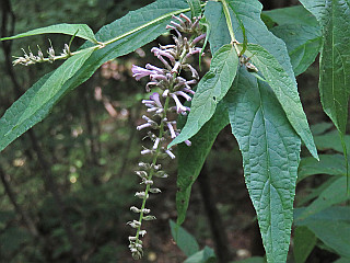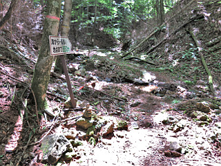 | 山行記 | ●志賀高原の3日目は、湯田中から2時間程車で移動して、佐久地方の榊山を目指す。山自体はそれ程有名ではないが、日本で一番海から遠い場所(海遠点)を通るということで、知る人は知る山だ。 ●これといった駐車場も無いので、林道の始点のゲート近くに停めようとしたが、車のドアを開けた途端、沢山のアブやブヨが車に侵入してきたので、何とか全部追い出した後、県道に戻り、県道の広くなった所に車を停めることにした。 ●県道でもアブやブヨが多かったが、先程と比べればまだましで、素早く支度を整えると、再び橋を渡って滝ヶ沢林道始点からゲートの脇を抜けて林道に入った。 ●林道は緩やかに上りしばらく続く。この日も高い気温が予想される天気で、沢沿いの樹林帯という、一見涼しそうな環境だが、風も無く湿度が高いので汗が噴出す。 ●林道の終点は広場になっていて「日本で一番海から遠い地点」の案内が設置されているので、それに従ってセンガ沢沿いの道に入る。沢に沿って続く登山道は、しだいに怪しくなり、所々で分断され、沢の中を歩く部分が増えてくる。おまけにアブやブヨが纏わり付いてきて、手足を動かしていないと刺されてしまう。 ●少なくとも「日本で一番海から遠い地点」まではしっかりとした道が続くものだと考えていたが、増水の度に登山道が壊れ、そのままにされていたようで、道は沢を遡るだけなのでわかりやすいが、倒木や流れの中を歩かなくてはならず、以外にきつい。 ●そんな道にうんざりとしてきた頃、ようやく右手に「日本で一番海から遠い地点」の標識みたいなものが見えてきたので一安心。沢から離れ、少し登ると「日本で一番海から遠い地点」の標識に辿りつくことができた。 ●「日本で一番海から遠い地点」には、説明看板などが設置されていて賑やかだが、ゆっくりそれを読むのは後にして、まずは榊山を目指す。榊山という案内は何処にも無いが、テープのある「日本で一番海から遠い地点」の看板の左に続く踏み跡を行く。 ●道は急な登りとなり、それを登り切ると尾根に出る。尾根上には赤い標識があり、方向的にはその尾根を辿れば榊山に付くはずなので、所々で現れる赤い標識などを目印に踏み跡を辿る。 ●最初のピークを左に巻いた後、次のピークに取り付くのだが、踏み後はますます薄く、どれも踏み跡に見えてしまい、次のピークを右に巻き始めたが、やはり方向的にはこのピークを登らなくてはならないので、とにかくピークの上を目指して直登してみた。 ●すると、尾根伝いに来る薄い踏み跡が見つかったので、それを見失わないように辿ると、次の赤い標識が現れたのでまたまた一安心。そのまま進むと三角点が現れ、そこが榊山に間違いないと確信する。 ●じっとしていると虫がうるさいので、すぐに来た道を間違えないように戻る。結局、アブやブヨに3箇所ほど刺された。すぐに振り払ったので毒が残り後々痛くなってくることは無かったが、花の写真を撮るのも気が気でなかった。 ●「日本で一番海から遠い地点」に行った人には、到達認定証を送ってもらえるということだったので、帰宅後、佐久市観光協会に写真やデータを送っておいたが、到達認定証は意外に早く自宅に届いた。 |