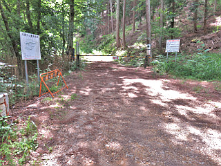 | 県道の駐車地点 | 「日本で一番海から遠い地点」案内図 | 滝ヶ沢林道ゲート |
