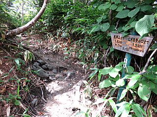 | 沢を木の橋で渡る | この標識が山頂まで案内してくれる | 5/10の標識 |