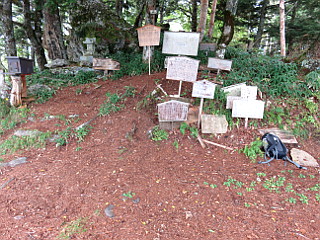 | 山行記 | ●例年、9月になっても暑い日が続くので、この時期登るとしたら、標高の高い山がいい。ということで、この山を選んだが、この日は意外に涼しく、途中のSAでも、Tシャツでは寒いぐらいだ。 ●この日イベントがあるという伊那スキーリゾートから、ゲレンデ脇の舗装された林道を登っていくが、想像以上に急傾斜で、二輪駆動のワンボックスは青息吐息だ。それでも何とか登り切って伊那スキーリゾート上部の駐車スペースに車を停める。 ●支度を整えると、早速林道を進んで登山口から登り始める。最初は沢筋のまっすぐでかなり急な道を登る。沢の音が聞こえてくると、沢沿いを登るようになり、やがて、その沢の上部を木の橋で渡り、山道に入る。 ●斜面は急だが、道はよく整備されていて、急な個所はうまくジグザグが切ってあり、あまり急には感じさせない。急坂が一段落すると道は緩やかになり、「土俵跡」という平坦な広場に出る。木に大きなサルのこしかけに似たキノコが生えていて面白い。 ●土俵跡からは、再び尾根上の急登が始まる。急坂をひたすら登るが、気温は低いものの、湿度が高く汗が噴き出す。いつの間にかカラマツやシラビソなどが目立ってくると、ロープの張られた急な階段が現れ、それを登り切ると常輪寺分岐に着く。 ●常輪寺分岐からは、少し緩やかに登った後、短いがこのコース最大の急登が始まる。あと一息と思い頑張って登っていくと、トリカブトの鮮やかな花が目に飛び込んでくる。そこまで来れば山頂は近い。 ●山頂の広場には、権現社の祠がある外、地元小学生の登頂記念のプレートが賑やかに立ち並んでいる。伐採されたのか、東面は開けており、標高の語呂合わせ、1(イ)7(ナ)4(ヨ)9(ク)3(ミ)エルのとおり、伊那谷と、南アルプスを見ることができる。 ●山頂の三角点は、少し将棋頭山方面へ行ったところにある。山頂で、昼食と休憩をしながら伊那谷と南アルプスの眺めを楽しんだ後、下山にかかる。この日は外のパーティーとは出会わなかったが、下のイベント会場はそこそこ賑わっていた。 |