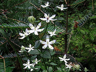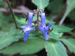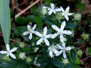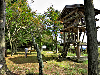 | 山行記 | ●JA愛知東Aコープ作手店近くでアケボノソウがよく咲いているということなので、出かけてみることにした。JA愛知東Aコープ作手店で場所を聞いて車で向かう。 ●JA愛知東Aコープ作手店から作手総合支所東信号を左折して進むと、作手診療所の立派な建物が現れる。その敷地の外れに「至文珠山城跡」の道標があるので、それに従って左に続く舗装道を登る。 ●狭いが舗装された道が続くのでそのまま車で進むと、舗装道が一旦切れ、再び舗装道が始まるが、その辺りの道沿いには、情報のとおりアケボノソウがよく咲いている。 ●どこまで舗装道が続くのかと思いながらさらに車で登っていくと、舗装道終点の広場に着く。見上げると木製の立派な物見櫓が見える。結局、車で山頂まで来てしまったようだ。 ●ここまで来たので、わざわざ戻って歩いて出直すのも面倒なので、広場に車を置き山頂へ向かう。少し山頂を回り込むようにホソバサヤクナゲの葉が目立つ道を行くと、急な石段が現れるので、それを一登りすれば文珠山の山頂に着く。 ●山頂は城址というだけあって広く、先程見えた物見櫓や山名の由来の文殊様などがある。外にも、「愛知の巨木」にも載ったというブナの巨木や体重70kg以上使用禁止のハンモッグ、ベンチなどがあり楽しい。 ●物見櫓は、構造上なかなか上り辛いが、せっかくなので登ってみる。周りの樹木が伸びているのと、土地勘が無いのとで、どこが見えているのか見当がつかない。それでも、物見櫓から下りてからようやく南に本宮山山頂の鉄塔群が見えているがわかった。 ●車に戻ると、先程確認したアケボノソウが咲く道沿いに車を停め、アケボノソウを楽しんだ。そこでは外にも、ナギナタコウジュやイヌコウジュ、タカクマヒキオコシなどの花も見ることができた。 ●この文珠山は、新城市が「歴史の小径」として整備している10km3時間のウォーキングコースの中の一部となっている。戦国時代の歴史には特段興味は無いが、山を巡るコースとして、今度は歩いて巡ってみたいと思った。 |
