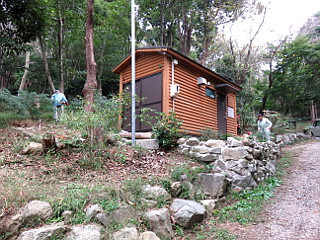 | あさやけコース入口 | あさやけコース登山口の循環式エコトイレ | あさやけコース登山口 |