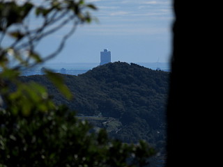 | 雨生山山頂から見る浜松のアクトタワー | 雨生山反射板と本宮山、吉祥山 | 紅葉が始まる木も |