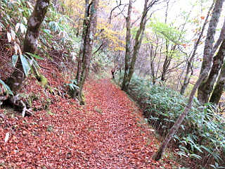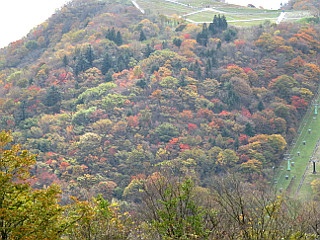 | 山行記 | ●茶臼山高原で大きなイベントがあり、紅葉もいい具合だというのでというので、久しぶりに茶臼山を登りながらイベントを楽しもうと出かけることにした。 ●駐車場の混雑はある程度予測できたので、イベントの始まる10時よりも早い時間に車を停めておいて、まずは茶臼山へ登ろうと、やや早めに豊川を出たが、茶臼山高原に着いた9時過ぎには既に第1駐車場は満杯で、第2駐車場に廻された。その第2駐車場も、山へ登ろうと支度している間に満杯になり、他の駐車場への誘導が始まっていた。 ●とりあえず駐車場に車を停めることができたので、まずは茶臼山を目指す。第1駐車場からではないので少し物足りないが、後でイベント会場まで往復するのだから同じことだ。 ●天気はというと、青空は出ているのだが雲が多くすっきりせず、南アルプスの3000m級の山は見えないが、雲海が綺麗だ。。紅葉は、茶臼山の山頂付近は既に終わりかけで、紅葉の葉もほとんど落ちてしまったという感じだ。 ●草地を登って自由の丘から樹林帯に入る。木の上よりも、色とりどりの紅葉の落ち葉が積もった登山道の方が綺麗だ。森の広場分岐、ささやきの小径分岐と続けて道を分けると、木の階段のある稜線への急な登りが始まる。 ●急な道だが少し頑張ればすぐに稜線だ。稜線からは、向かいの萩太郎山の紅葉や水墨画のように重なる奥三河の山々を見ることができる。また、南アルプス方面には雲海が広がり、これもまたいい感じだ。 ●稜線は既に山頂の一画で、そのまま平坦な道を進めば三角点や展望台のある愛知県最高峰の茶臼山山頂だ。イベントの日だけあって登山の格好をした人やら、普通の格好の人やらで賑わっており、展望台上も人が溢れていた。 ●展望台で展望を楽しんだ後、長野県側の鉄背の展望台の方へ進む。少し期待していたが、やはり展望台は登ることができずがっかり。仕方がないので帰りは雷岩へ向けて下降を開始する。雨で濡れた落ち葉の急坂は滑りやすく、慎重に下る。 ●雷岩からはささやきの小径と名付けられたトラバース道を進む。この辺りまで来ると人はあまり見かけないので静かで、木に残った紅葉の葉を楽しみながら歩くことができた。 ●分岐で、往きに来た道と合流すると、再び登山道は登山客や観光客で賑やかになる。自由の丘まで下ると、萩太郎山の紅葉や奥三河の山々、雲海などを楽しみながら車を置いた第2駐車場まで戻った。 ●車に戻ると、要らない荷物を置き、いよいよイベント会場へ向けてゲレンデを下る。イベントは「第2回三遠南信食の祭典in茶臼山高原」で、会場はすでに多くの人で賑わっていたが、何とか席を確保し食の祭典を楽しむことができた。 |
