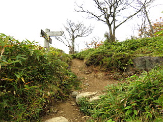 | ささやきの小径分岐 | 急坂を登ると稜線に出る | 三角点や展望台のある茶臼山山頂 |