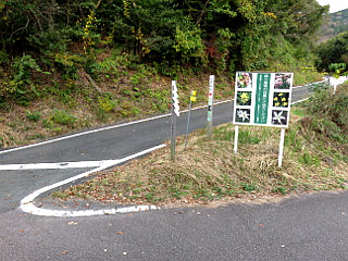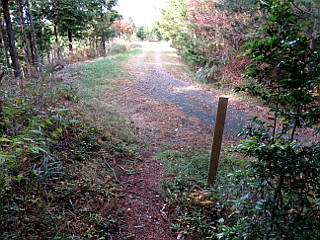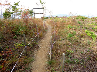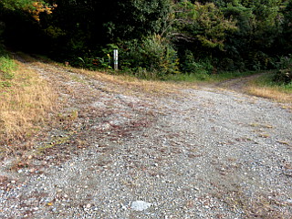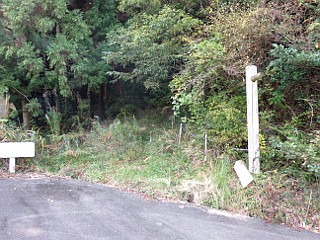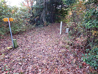 | 五葉まつり駐車場 | 赤い実の小径入口 | 防火水槽のすぐ上が尾根道 |