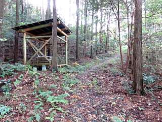 | 出丸登り口 | 宇利峠方面への林道分岐 | 車止めフェンスと東屋 |