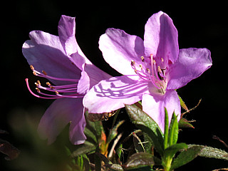 | 山行記 | ●五葉城祉が整備されてからから、一度も富士山を見たことがなかったので、出かけてみることにした。昨日よりは朝の冷え込みも緩かったが、もしかして、シモバシラの霜柱を見ることができるかと思って見てみたがやはり出ていなかった。 ●五葉湖駐車場に車を停めると、今回は逆コースをとろうと、駐車場近くにある、夕焼けの小径入口から山道に入る。ピッチの大きいコンクリートの階段を登ると、日当たりのいい山道を登るようになり、それを登り切ると山腹をアップダウンしながら進む。 ●しばらく歩くと、下に舗装道が見えてきて、その舗装道と合流すると東屋と車止めゲートのある場所に出る。そこからしばらくはその舗装道を緩やかに登る。舗装は途中で切れるが、広い林道が続く。 ●林道は、途中、涼しの小径などの園内の小径や送電線鉄塔への分岐を分けながら徐々に高度を上げていく。やがて林道は、宇利峠・蛇穴方面と五葉城祉方面とに分かれるが、そこはもちろん五葉城祉方面へ進む。 ●林道は高度を上げるに従い明るくなり、出丸への登り口に着くが、その反対が、最近整備された五葉城祉への入口だ。この前来た時無かった階段が整備された斜面を登っていくと、広く木々が伐採された五葉城祉に到着する。 ●城址からは、この間も見ることができた南アルプスや三河から奥三河の山々が見渡せる外、お目当てだった富士山も、雪を纏った端正な姿を見せていた。昨日とは打って変わって暖かく、地元に住む知り合いと偶然会ったので、しばらく話に花を咲かせた。 ●しばらく五葉城址で過ごした後、先へ進む。本来の五葉城址入口は、城址の研究をする人たちの車が何台も停められており、いつもとは違った感じだ。五葉山への入口は、再び林道を緩やかに登っていくとすぐのところにある。 ●入口から市境の尾根道に出ると、右の方へ進む。少しアップダウンし、短いが急な斜面を登ると三角点のある五葉山山頂だ。山頂には、山名表示も無く狭いが、伐採により北東方面に展望が開け、富士山や南アルプスを見ることができた。 ●五葉山からは、市境の尾根を下る。一旦下った後、緩やかにアップダウンするが、下に行くにしたがって傾斜は急になり、最後はずり落ちないように下るのに必死で、石を転がしてしまうと、しばらく止まらない程だ。 ●急坂が終わると五葉の森内の林道を歩く。草が伸びてややヤブっぽいが、道はしっかりしている。観察の小径やドウダンの小径などを次々と分けて進むと、展望台への分岐に出る。せっかくなので、展望台へも寄っていくことにする。 ●分岐から緩やかな坂を登っていくと、すぐに立派な展望台に着く。展望台の標高では富士山は見ることができないが、南アルプスは見ることができ、奥三河の山々や、吉祥山、本宮山が近くに見える外、蒲郡方面の三河の山々も見ることができる。 ●展望台で展望を楽しんだ後、林道をそのまま進む。散策の小径やいつも鉄塔から下りてくる道を分けて、今回は林道をまっすぐ行ってみることにする。 ●林道は途中から舗装路に変わり、すぐに左へ大きくカーブするが、そのまま進むと帰りが遠くなってしまうので、そこを右に行くドウダンツツジの小径方面への道に入る。 ●この道もややヤブっぽいが、やがて、五葉湖と五葉湖沿いの道が見えてきて、程無くいつもの野鳥の森の入口に出る。そこからは、五葉湖沿いの舗装道を歩いて、堰堤まで行き、堰堤を歩いて五葉湖駐車場まで戻った。 |
