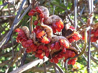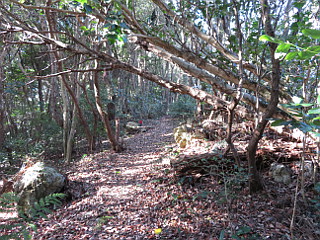 | 山行記 | ●前日の五葉山が比較的楽だったので、この日は、もう少し歩く衣笠自然歩道を歩くことにした。ここも先月訪れたばかりだが、衣笠山や滝頭山などのまとまった登りもあるので、運動にはなるだろう。 ●23号バイパスで車を停める滝頭公園駐車場へ向かうが、晴れてはいるものの、雲が多く展望はすっきりとしない。これでは、富士山の展望も期待できないだろう。 ●とにかく、滝頭公園駐車場に車を停めると、衣笠自然歩道入口まで舗装道の歩道を歩いて向かう。道端にはシロノセンダングサがよく咲き綺麗だが、これもセンダングサなので、あの質の悪い引っ付き虫になるのかと思うと複雑だ。 ●衣笠自然歩道の小衣笠の道入口に着くと、早速階段が整備されている緩やかな道を登る。道は数回折り返し、ツバキの咲くジョギングコースと合流すると、すぐに、松尾岩コースの入口にもなる未舗装林道終点の広場に出る。 ●樹林帯で薄暗い道を登っていくと、松尾岩が現れ、すぐ上にあるに南の覗きを見ながらさらに進むと、急な登りになる。階段が現れると、それを150段数えながら登れば、しだいに傾斜も緩み、殿様新道からの道と合流し、衣笠山の山頂に到着する。 ●探訪台に上ると、ややガスっぽく雲も山腹にかかっていたが、期待していなかった富士山を見ることができ、加えて南アルプスや御岳、恵那山なども確認することができ感激した。どうやら、しだいに空気が澄んで来ているようだ。 ●衣笠山からは、いつものように桟敷岩新道を下る。途中、桟敷岩からは、前回よりは霞んでいるものの、鈴鹿の山々を確認することができた。 ●直登コースと合流し、広い防火帯を歩くが、ヒヨドリバナなどの花後の綿毛が逆光になり美しい。ジョギングコースと合流し仁崎峠へ向かう。緩やか道にはまだツワブキが残っていた。 ●仁崎峠からは、いつもの急坂を登り滝頭山へ向かう。目印の地点からいつも700歩を数えながら登るが、この日は、700歩まで数えないうちに着くことができた。750歩を超える日もあるのに、不思議な感じだ。 ●滝頭山からは、衣笠山からよりもはっきりと富士山や南アルプスを見ることができた。ここまで来れば、以降は、まとまった登りも無く、快適な稜線道が多いので気分的には楽になる。 ●中西山を越え、長興寺分岐から藤尾山方面に下る。荒れた林道を渡り、少し登ると再び快適な稜線道に変わるが、前回と比べても、倒木が目立つ。通ることができないものは無いが、他の木に倒れ掛かっているものが多いので、いずれは通行困難になるのかもしれない。 ●三ツ俣、迷子尾根の頭を次々と通過し不動岳に着くと、再び広い防火帯の道に変わる。不動岳からザレて滑りやすい斜面を下り展望のあるピークを過ぎると、一旦下り、最後の階段70段を登ると赤坂山に着く。 ●赤松山からは、滝頭山と恐竜の背、展望台のある衣笠山などが見え、狂い咲きのモチツツジなどを見ることができる。赤坂山から少し下ると石灰岩が露出する秋芳平。さらに進むと展望台のある扇平に着く。 ●扇平からは、クチナシの道を下り、滝頭公園駐車場へ下る。 |