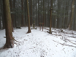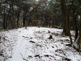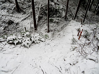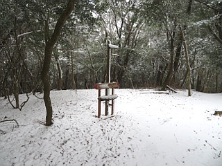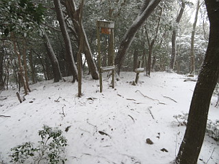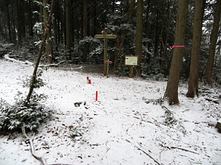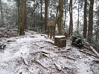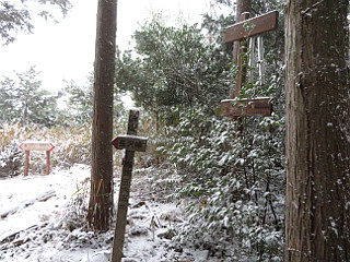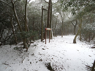 | 山行記 | ●この計画は、以前から立てていたものだが、この日は冬型が強まり、太平洋側の平地でも雪が降るという予報だ。とりあえず、集合場所へ行ってみると、皆半信半疑ながら予定のメンバーが揃っていた。 ●まだ雪は降りだしていなかったが、出発してすぐに雪が舞い始めた。とにかく現地まで行って決めようと、登山口の岡崎市鳥川を目指した。雪はしだいに強くなっていくが、このコースはエスケープルートも豊富なので、とにかく出発することにした。 ●雪が降る中、支度をしてとよとみ梨のある愛宕山登山口から新東名に沿って登っていく。最初は雪が多くて大変だったが、すぐ樹林帯に入ると、それ程でもない。このコースはほとんどが樹林帯の中なので丁度いい。 ●沢沿いに付けられた道は、「中村折越」で折り返し、急坂を登るようになる。このコース最初のピークの貝津山から学校山を経て、岩場を登ると愛宕山山頂だ。どのピークにも鳴り物があり、一人ずつそれを鳴らして盛り上がる。 ●愛宕山のすぐ上が小安堂方面との分岐となる愛宕山分岐で、ここからは主稜線のなだらかな道を進む。少し登ると見晴し場に出るが、雪とガスで何も見えないので先へ進む。傾斜がやや急になってくると、白髭八柱神社への分岐を経て京ヶ峰に到着する。 ●京ヶ峰からは急な下りが始まり、やがて、「平成の大崩れ」に着く。そこは、岡崎方面や新東名を望むことができる場所だが、この状態では望むべくもない。それでも一瞬ガスが晴れ見ることができたのは幸運で、樹木に付いた霧氷も美しかった。 ●平成の大崩れからは、南山、七曲峠を経て自然山、鳥川山、笹百合山、古里山、ホタル山とピークが連続する。それでも、山名が読めなくなっていたり、鳴り物が無かったり、それを叩く木槌がなかったりと経年劣化が目立つ。 ●ホタル山を過ぎ、まとまった急な登りを登り詰めると登山、そこからは、すぐに動物山に着くが、ここから道は南に進む。元気山、昔山と少しまとまった登りが続き、その先、平和山を経て三角点のあるホド田山に到着する。 ●ホド田山からは、一旦急坂を下り、登り返せば沢山。そこから、右に伐採後の幼木が育ってきた斜面を見ながら不安定な急坂を下る。伐採跡からは、相変わらず遠くは見えないものの、暖地の低山ではなかなか見ることのできない、見事な雪景色を楽しむことができた。 ●年間通じて1度見ることができるかできないかの景色を楽しみながら、丸山を越えて最後の長く急な音羽富士への登りを登る。ここまで歩いてきて最後にこの急坂を登るのは大変だが、我慢して登る。振り返れば綺麗な雪景色が見られるが、いつも見えるはずの宮路山などは見ることができなかった。 ●急な登りも、樹林帯に入ると傾斜も緩み、音羽富士の山頂に着く。ここまで来れば後は下りばかりだ。なだらかな山頂部が終わると、道は下り出す。普段なら何でもない下りだが、雪が降り積もった下りは滑りやすく難易度が高い。 ●途中、ユリ沢方面への分岐を見送り、さらに進むと古坂峠に出る。古坂峠からは、昔から人々の往来があったことを忍ばせる緩やかな峠道を下る。ところどころ湧水を渡りながら進むと、舗装された道路に出るので、それを歩けば車を置いた、新東名高速脇の駐車スペースまで戻ることができる。 ●車に戻ると、左後のタイヤの空気が抜けているのに気が付いた。よく見ると、タイヤにボルトが刺さっているのが見えた。これでは帰ることができないので、JAFを呼ぶことにした。 ●JAFが到着するまで、雪も降っていて寒いので、暖房のためにエンジンをかけて車内で待っているとJAFが到着。スペア―タイヤが無いので最悪レッカー移動まで考えたが、幸いにもパンク修理だけで済んだ。 ●このコースは、前年の同時期にも訪れたことがあるが、その時は天気に恵まれ、展望を楽しむことができた。しかし、今回は前回とは打って変わって、積雪や車のパンクなど、またいろいろ別の経験をすることとなった。 |