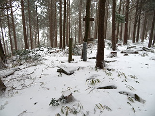 | 平成の大崩では霧氷が見られた | 平成の大崩から一瞬だけ展望が開けた | 南山山頂 |