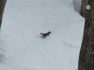 | ふわっと積もった雪も可愛い | 疾走するホンドリス | 雪が多く潜ることができない鳥居 |