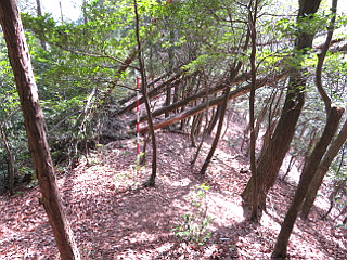 | 採石場と新東名高速道を見下ろす | 額堂山山頂 | 下山道の倒木群 |