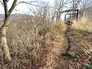 | 東屋から見た角田山頂はまだ遠く感じる | 239.1m三角点から道は一旦左に下る | 五りん石コース分岐 |