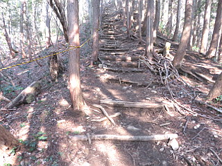 | 角田山へ最後の急登を登る | 角田山山頂 | 桜尾根コース分岐 |