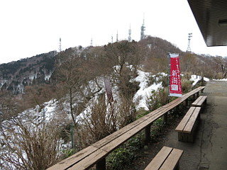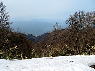 | 山行記 | ●国上山の後、寺泊まで行って昼食を食べた後、まだ時間があるので妻の要望で弥彦神社へ行くことになった。弥彦神社の駐車場に着くが、まだ時間がありロープウエイを使えば弥彦山の山頂まで行くことができそうなので行ってみることにした。 ●弥彦神社の横からロープウエイ山麓駅まで歩くが、意外と遠い。弥彦神社の近くから送迎バスが出ていたのは歩き始めてからだったので、仕方なく歩いていくことにした。 ●観光客に混じって山頂駅まで着くと、早速山頂を目指す。山頂はまだ雪が残っており、観光施設を過ぎると道は雪に覆われており、気温も山麓と比べると一段低い。 ●長靴は履いてきたが、ストックや手袋を忘れたので歩きにくいし手が冷たいが、山頂までは700mということなのでそのまま登っていく。途中、観光客と思われる人たちが普通の靴で難儀をしながら下りてくるので、それよりはましのようだ。 ●雪は程よい硬さだが、トレースを踏み外すと足がもぐりこんでしまうので要注意だ。意外に傾斜のある雪の道を登っていくとテレビ各局の電波中継施設の鉄塔が林立するピークに着く。 ●そのピークから緩やかに少し下って登り返せば鳥居が見えてくる。最後の急坂を登り切れば弥彦山の山頂だ。雪で埋まったテラスを回り込めば弥彦神社奥社があるので、まずはお参りをする。無雪期は行列ができるところだ。 ●テラスからは、多宝山、角田山、佐渡の山々、越後平野や先程国上山からも見ることができた信濃川の大河津分水路などの展望が広がる。それでも、越後平野の奥に見えるはずの越後の山々は、残念ながら見ることができなかった。 ●帰りは来た道を戻るが、急坂の下りは長靴では意外と厳しい。途中お尻で滑ってみたが、意外に面白かった。観光施設を少し覗いた後、山頂駅からロープウエイに乗り山麓駅へ。結局帰りもバスは使わず、弥彦神社をお参りして駐車場まで戻った。 |
