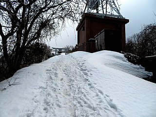 | 観光施設までは除雪されている | 観光施設から見た弥彦山の山頂部 | 途中から見る日本海と佐渡ヶ島 |