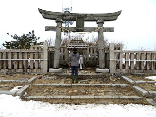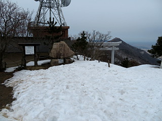 | 雪はまだまだ多い | テレビ中継施設が林立するピーク | 鳥居が見えてくる |