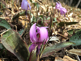 | ショウジョウバカマやハルリンドウの咲く葦毛湿原とカタクリが咲き始めた弓張山脈主稜線 | ||