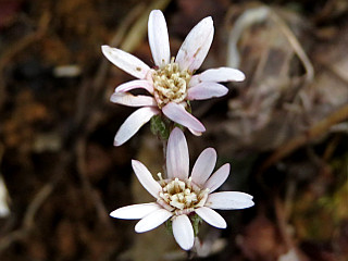 | 山行記 | ●そろそろ春の花が咲き始めた頃かと思い、比丘尼と県境稜線を訪れることにした。いつもよりも時間が遅かったので比丘尼の駐車場には既に数台の車が停まり、下の道路にも何台かの車が路駐していた。 ●随分暖かくなり、天気も良く何を着ていったらいいのか迷うところだが、とりあえず支度をして登り始める。登り始めの斜面はフモトスミレがよく咲いているところだが、あまり見当たらない。 ●東屋までもハルリンドウやショウジョウバカマが幾つか咲いているだけで、ここの花も例年より開花が遅れているようだ。それでも、いつもの所に咲くシュンランは少し数が少なくなったように感じるが元気に咲いていた。 ●ここは「世界の桜の園」というだけあって、コヒカンザクラなどは見頃を迎えており、おすすめの小径の分岐近くに咲くミツバツツジも満開になっていた。 ●金山へ向かうと、いつもの所にセンボンヤリがいくつも花を付けていた。邪魔だった倒木が切られ、通りやすくなった樹林帯にはコショウノキの花が最盛期を迎えており、アオキの花もようやく咲き始めといったところだ。 ●林道出合からジグザグに暗い植林帯を登ると金山山頂だ。山頂では大分伸びてきていた反射板の前の木々が切られて明るくなっており、今まで見づらかった吉祥山や本宮山などを見ることができた。 ●金山からは、県境稜線を歩き雨生山方面へ向かう。県境稜線ではヤマウグイスカグラやアセビ、ヤブツバキ、クロモジなどの花が咲いており、裸地ではハルリンドウが咲き始めていた。 ●展望のいいピークから雨生山へ向かうと、道端にはタチツボスミレやハルリンドウ、センボンヤリなどが咲き始めており、花咲く春の始まりを感じさせる。雨生山山頂では、ご婦人の登山者達が賑やかだった。 ●雨生山山頂から展望ピークまで戻り、反射板経由で新城方面下降点からの道と合流し、林道へ下る。そこからはしばらく林道を下るが、林道沿いにはキブシやサルトリイバラ、ヒサカキ、タチツボスミレなど春の花が出揃ってきている。 ●林道から再びおすすめの小径に合流し、桜が咲き揃ったおすすめの小径を下って西口登山口から農道に出る。後は、オオイヌノフグリやホトケノザ、タネツケバナなど、既に春の花っ盛りの田園地帯を歩いて比丘尼駐車場まで戻った。 |