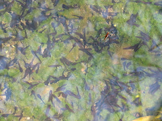 | 雨生山反射板から見る吉祥山、本宮山 | 水溜まりには無数のオタマジャクシ | おすすめの小径に再び合流 |