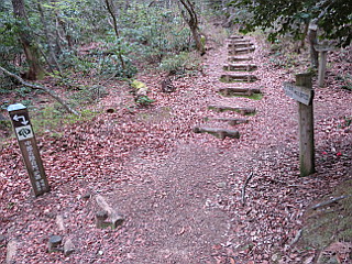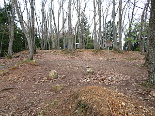 | 山王丸跡 | 清水谷分岐からは急な階段を登る | 三角点のある小谷山山頂(大嶽城跡) |