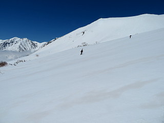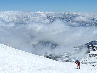 | 終始急な雪面の登降をスノーシューで楽しんだゴールデンウイーク直前の雪山 | ||